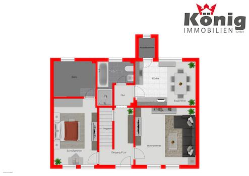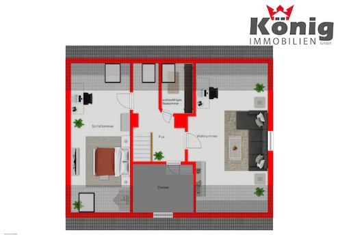 - Dachgeschoss: Teilweise ausgebaut, mit zwei Zimmern; ein weiteres Badezimmer kann ausgebaut werden