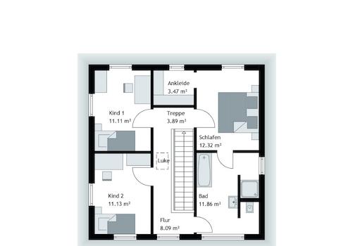 Die Grundrisse zeigen Beispiele und sollen Ihnen einen ersten Eindruck unserer Häuser bieten. Wie Ihr Haus später aussieht, entscheiden Sie selbst: vom Grundriss über die Ausstattung bis hin zur Frage, ob und welche Arbeiten Sie selbst übernehmen möchten.