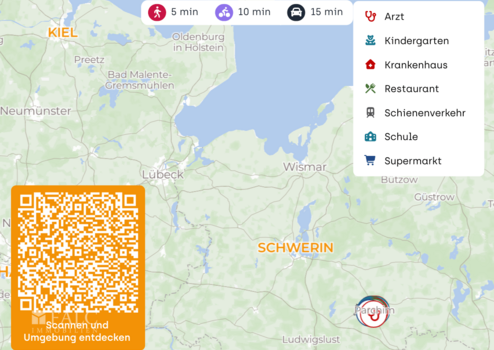 Die Landeshauptstadt Schwerin erreichen Sie in ca. 40 Minuten mit dem Auto, Hamburg in ca. 1 Stunde und 40 Minuten.