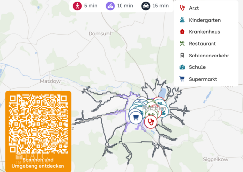 Die Wohnung liegt im Stadtteil Weststadt von Parchim, in fußläufiger Nähe zu Geschäften des täglichen Bedarfs, Apotheken und Nahversorgern. Die Anbindung an das städtische Verkehrsnetz ist solide — sowohl in Richtung Innenstadt als auch zu überregionalen Wegen.
