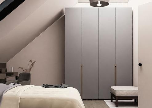 Sie betreten sie über die Diele, die zwei praktische Abstellräume für vielerlei Dinge beinhaltet und führt Sie linker Hand zum Schlafzimmer mit kleinem Ankleideraum.