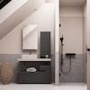 Vom Wohn-/Esszimmer führt ein Flur zum Gäste-WC, ihrem Wohlfühlbad mit großer bodenebener Dusche sowie Badewanne und den beiden Kinderzimmern.