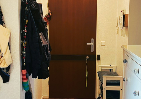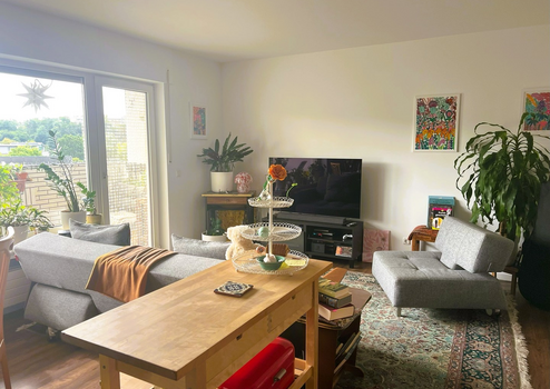 Der Süd/Ost-Balkon verspricht Sonne am Vormittag und angenehme Lichtverhältnisse am Nachmittag — ideal zum Frühstücken oder Entspannen nach Feierabend. Die Wohnung ist durch große Fensterflächen lichtdurchflutet und vermittelt ein freundliches, einladendes Wohngefühl.
