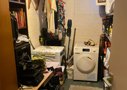 Keller: eigener Kellerraum — mit viel Stauraum und Anschlüssen für Waschmaschine und Trockner.
