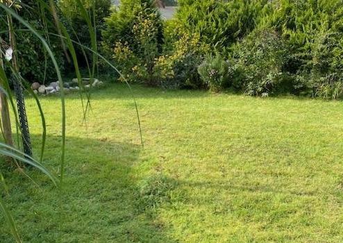 + Großer Garten, 960 qm mit zwei Kirschbäumen und einem Boskopapfelbaum und viel Rasenfläche zum Toben für Ihre Kinder oder Hunde.