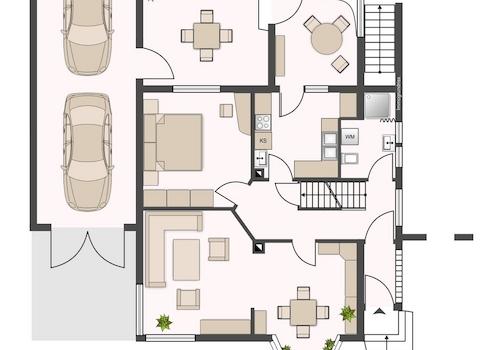 Um deutlich mehr Wohnfläche zu generieren, wäre eine Überbauung des Wintergartens und der Terrasse möglich.