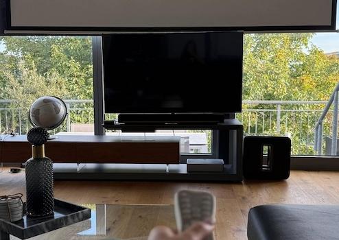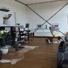 Ein lichtdurchflutetes Wohnzimmer mit bodentiefen Fenstern erfüllt den großen Wohnbereich mit Sonne und einem Gefühl von Freiheit. Ein Ort, an dem man leben, kreativ sein und sich inspirieren lassen möchte.