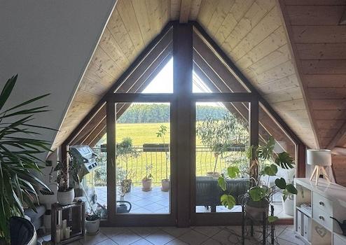 Diese Maisonette-Wohnung mit ca. 167 m² Wohnfläche und 5,5 Zimmern erstreckt sich über zwei Etagen und verbindet offene Architektur mit einem hellen Raumkonzept. Sichtbare Holzbalken, eine Galerieebene sowie ein Kamin sorgen für eine besondere Wohnatmosphäre.