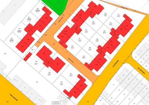 Im beschriebenen Baugebiet wird in mehreren Baureihen geplant. Diese verschaffen nicht nur architektonische Vielfalt, sondern auch individuelle Gestaltungsvorgaben.