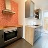 Die Wände sind mit Raufaser tapeziert und weiß. Die Wohnräume, die Küche und die Diele, sind zum Teil gefliest und mit Laminatboden verlegt. Das Duschbad ist mit dunkelgrauen Bodenfliesen und weißem Fliesenspiegel modern ausgestattet.