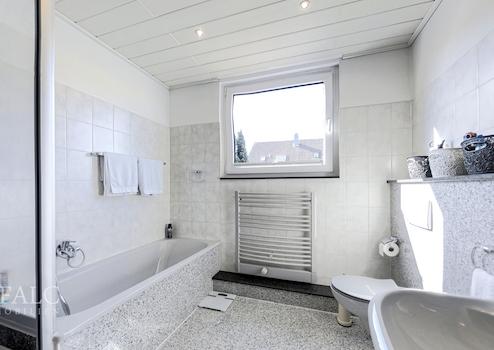Das 1. Obergeschoss verteilt sich auf zwei Kinder/Arbeitszimmer, ein Elternschlafzimmer und das schöne geräumige Bad mit Fenster, Dusche und Badewanne.