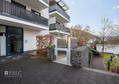 In jeder Etage ist ein Fahrstuhl vorhanden. Im rückwärtigen Bereich des Wohnhauses befinden sich die Parkplätze. Ein PKW Stellplatz gehört zur Wohnung. Ein Außenfahrstuhl ermöglicht auch hier einen barrierefreien Zugang zum Wohnhaus.