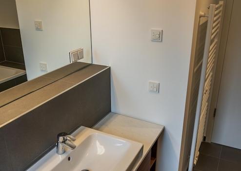 - Badezimmer inkl. Wanne, barrierefreier Dusche, Handtuchheizkörper, Waschtischunterschrank