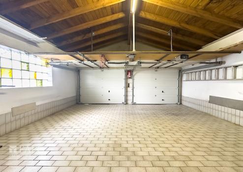 Weiterhin befindet sich im Untergeschoss der Heizungsraum sowie der Zugang zur großen Doppelgarage und Werkstatt. Die beiden letzteren sind hervorragend für einen Handwerker geeignet. Weiterhin kann sogar die Einliegerwohnung als Bürofläche genutzt werden.
