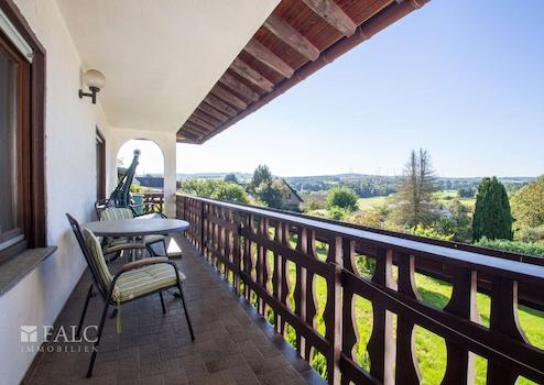 Eine Küche, ein Badezimmer mit Badewanne und Dusche, ein Gäste WC, ein Kinderzimmer und ein Elternschlafzimmer mit Ankleide gehören zum Raumprogramm dieser Etage. Das Highlight ist das ca. 51 m² große Wohn- und Esszimmer mit einem möglichen Kaminanschluss. Die großzügig angeordneten Fenster mit Blick zur benachbarten Wiese sorgen für einen hellen und sonnendurchfluteten Wohnbereich. Der angrenzende überdachte Süd Balkon ist vom Wohnzimmer aus begehbar und bietet Ihnen einen herrlichen Weitblick in den romantischen Westerwald.