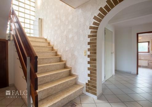 Sie betreten das Haus und werden im gemeinsamen Treppenhaus empfangen. Von hier aus gelangen Sie zur ca. 133 m² großen Erdgeschosswohnung.