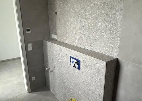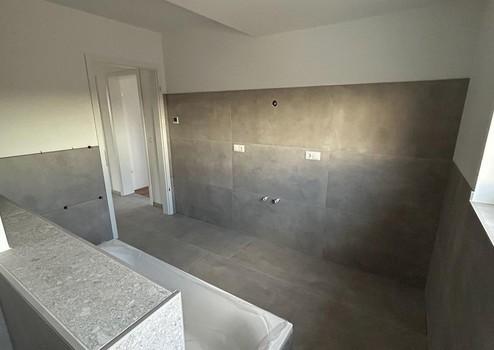 •Großzügiges Badezimmer mit Badewanne und T-Wand (inklusive hochwertiger Unterschränke im Mietpreis)
