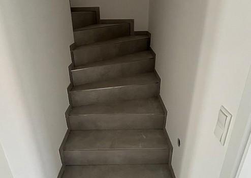 •Moderne Großformat-Fliesen im gesamten Erdgeschoss sowie auf der Betontreppe