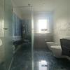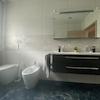 Das modern ausgestattete Badezimmer verfügt über eine großen bodengleiche Dusche. Zusätzlich gibt es ein Gäste-WC für mehr Komfort.