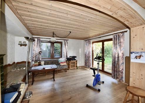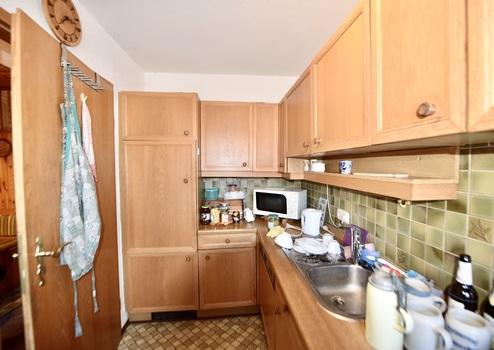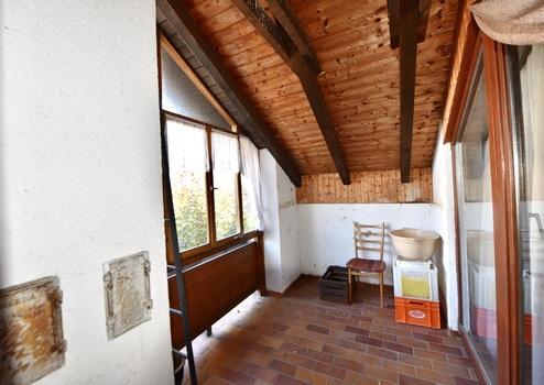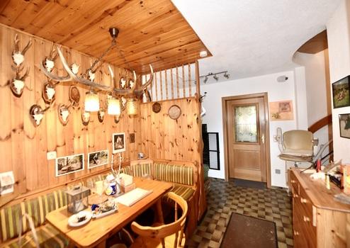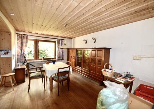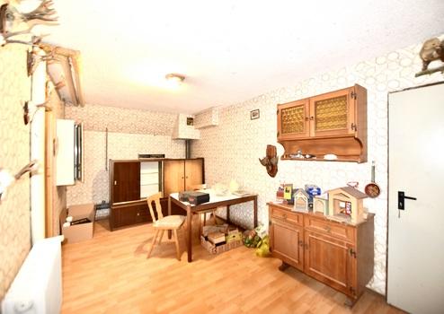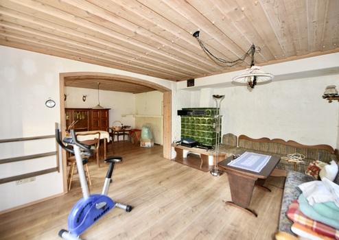 Im Erdgeschoss ist ein Windfang mit daneben liegendem Gäste WC, die Küche, sowie eine große Diele mit Essplatz, von hier wird auch der Kachelofen befeuert.