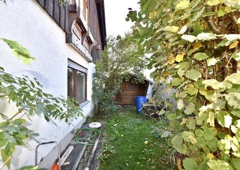 Das Grundstück mit ca. 300 qm ist leicht eingewachsen und ebenerdig.