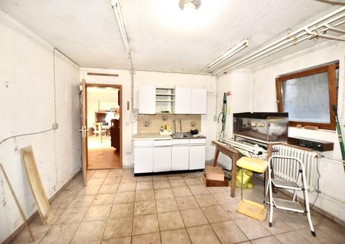 Im Untergeschoss ist eine geräumige Wohndiele, ein Waschraum der eventuell auch als Duschbad umgebaut werden könnte, ein ausgebauter Raum mit Küchenanschlüssen und 2 großen Fenstern im Lichtschacht sowie ein Vorratsraum.