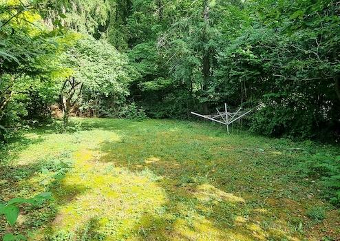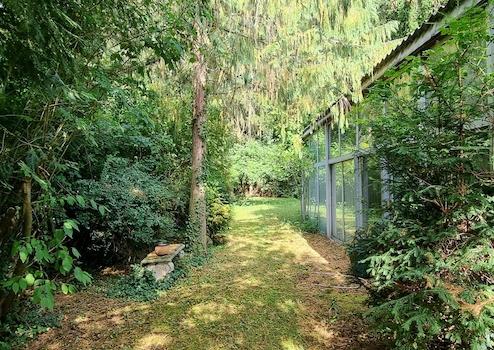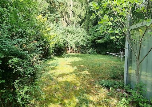 - der Garten ist ebenerdig, nicht einsehbar und grenzt an eine bewaldete Grünfläche