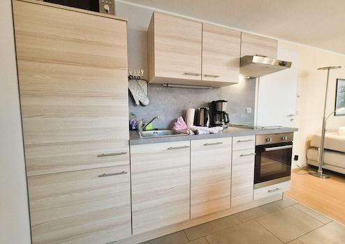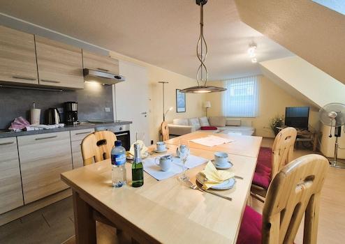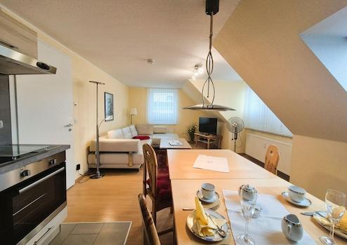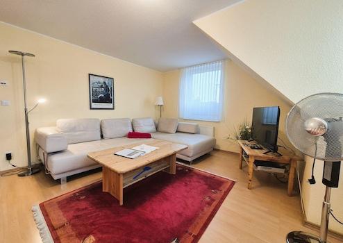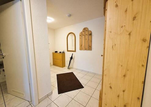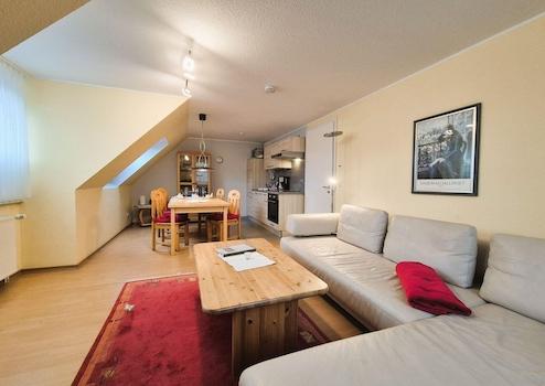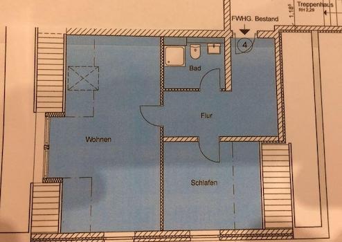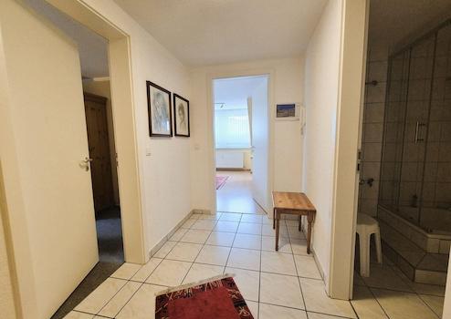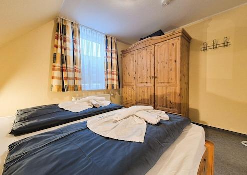 Traumhafte und gemütliche 2 Zimmerwohnung im Dachgeschoss eines barrierefreien Appartementhauses mit Aufzug und Kellerraum. Es besteht ein Hausmeisterdienst und eine zentrale Müllentsorgung. Ideal zur Eigennutzung oder zur rentablen Vermietung als Ferienwohnung. Perfekt auch als Seniorenresidenz aufgrund der vorhandenen Rundumversorgung. Die Wohnung ist voll möbliert und ausgestattet wie eine moderne Ferienwohnung. Der großzügige Flur führt in das Badezimmer mit Dusche und WC sowie in das gemütliche Schlafzimmer mit einem bequemen Doppelbett und einem geräumigen Kleiderschrank.