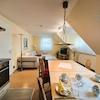 Im Wohnzimmer erwartet Sie eine komfortable Eckcouch, ein Flachbildschirm und eine neue Einbauküchenzeile mit Esstisch. Vom Wohnzimmer aus genießen Sie einen seitlichen Blick direkt auf die Müritz, der für entspannte Stunden sorgt.