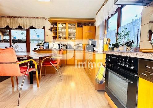 Einfamilienhaus mit Einliegerwohnung BJ 1994/95, Grundstück ca. 1030m², Wohnfläche gesamt ca. 208,07m² (EG 111,74²,DG 73,51m², KG 22,82 m²), Nutzfläche KG ca. 42,40m², Nutzfläche Garage ca. 27,55m², Fassade 36,5er Mauerwerk, DG Kaltdachboden/Lager, Zwischendecke gedämmt, Sat TV/DSL/Glasfaser, Elektrik vollständig dreiadrig/FI Schalter, 2x Zählerplatz + 1x Zwischenzähler, Echtholztreppe in Leichtbauweise zum OG/DG, Treppe KG massiv; EG: Flur, Gäste-Bad mit Dusche, Abstellraum, Wohn-/Esszimmer mit offener Küche, EBK, Zugang zur Terrasse, Zugang zum Wintergarten (beheizt), Zugang Balkon, Speisekammer; OG/DG: Flur, Schlafzimmer, Zugang Balkon, Balkon, Kinderzimmer 1, Kinderzimmer 2 mit Küchenanschlüssen, Tageslichtbad mit Wanne und Dusche; KG: separater Zugang, Bad mit Dusche + Waschmaschinenanschluss, Flur mit Treppenaufgang, Flur 3, Küche mit EBK, Wohn-/Schlafzimmer, Ankleidezimmer, Heizungskeller, Tankraum, Bad mit Dusche + Infrarotkabine, Vorratsraum; Doppelgarage BJ 1996 mit elektrischem Sektionaltor/Funk + Stromanschluss, Dachboden/Lager, separater Zugang, angelegter Gartenbereich, vollumzäunt (Zaun/Hecke/Sträucher), 2x Terrasse (EG + Souterrain/1x mit Überdachung), 2x Gartenhaus (1x groß/1x klein)