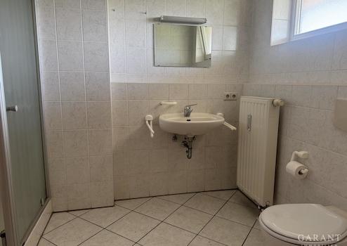* Seniorengerechtes Badezimmer mit Dusche, Waschmaschinen-