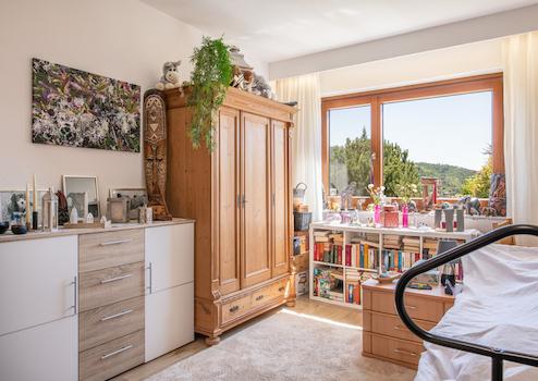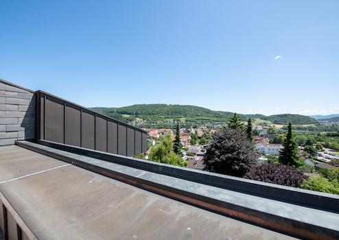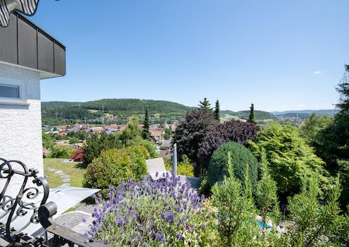 Küche: THERMOMIX & KITCHENAID finden locker ihren Platz auf der hochwertigen, schwarzen Granitarbeitsplatte - natürlich auch Ihre neue JURA-Kaffeemaschine! Die moderne, helle Designer-Einbauküche ist vollständig ausgestattet und bietet jeder Menge Arbeitsfläche mit echter Granitfläche und einem BORA-Abzug im Kochfeld. Die durchdachte Raumaufteilung schafft optimale Bedingungen für Kochbegeisterte – ebenfalls mit Blick ins Grüne sowie direktem Balkon und Garagenzugang um auf kürzestem Wege ihren Einkauf zu verstauen. Die Küche ist mit Fußbodenheizung ausgestattet. Wohnbereich: Das großzügige, sich über 2 Etagen erstreckende Wohnzimmer überzeugt mit viel Licht & Luft, edlem Bodenbelag sowie mit seinem Balkonzugang. Über eine platzsparende Treppe gelangen Sie ins überwiegend neu ausgebaute Dachgeschoss. Ein idealer Raum für Familienleben und stilvolle Wohnkultur. Balkon: Der großzügige Balkon lädt mit seinem herrlichen Blick über den herrlichen Garten sowie über das Schlüchttal zum Verweilen ein. Genießen Sie sonnige Stunden oder laue Abende mit direktem Zugang aus dem Küchen- und Wohnbereich. Dieser Ausblick unterstreicht die ruhige, naturnahe Lage des Hauses. Ein Ort zum Durchatmen und Entspannen. Schlafzimmer mit Balkon und eigenem Badezimmer: Bilder sagen mehr als tausend Worte! Genießen Sie herrliche Ausblicke auch aus Ihrem Schlafzimmer oder dem vorgelagerten Balkon. Bad ensuite? Nicht ganz, denn das Bad ist auch vom Hauptflur zugängig und könnte somit beispielsweise auch vom Gästezimmer aus mitgenutzt werden. Gästezimmer / Ankleidezimmer / Kinderzimmer: Ein weiteres Zimmer im Erdgeschoss rundet das Raumangebot im EG ab und bietet vielerlei Verwendungsoptionen. Doppelgarage: Die geräumige Doppelgarage liegt direkt über dem Heizraum und bietet Platz für zwei Fahrzeuge sowie zusätzlichen Stauraum.