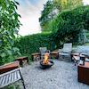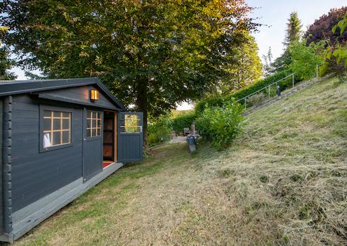 Gartenhaus und Grillplatz: Über eine Treppe mit wertigem Edelstahlgeländer und Beleuchtung gelangen Sie zum Gartenhaus und der Feuerstelle – beides inkl. Treppe wurde im Jahr 2022 fertiggestellt. Genießen Sie gemütliche Grillabende inkl. Salatbuffet aus dem Gartenhaus – ausreichend Arbeitsflächen, Strom und Wasseranschluss (zwischen Gartenhaus und Grillplatz) sind vorhanden.