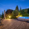 Pool: Luxuriöses Ambiente im Garten: Der stilvoll beleuchtete Outdoorpool schafft ein exklusives Wellness-Erlebnis – ein absolutes Alleinstellungsmerkmal dieser Immobilie. Eine sonnenerwärmende Warmwasserdusche ist ebenfalls Teil dieses grandiosen Wellnessbereiches. Genießen sie den freien Blick nach oben auf Ihrer drehbaren Himmelsliege!