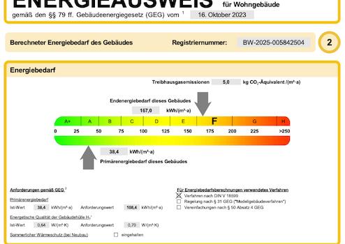 Endenergieverbrauch beträgt 167.00 kwh/(m²*a).