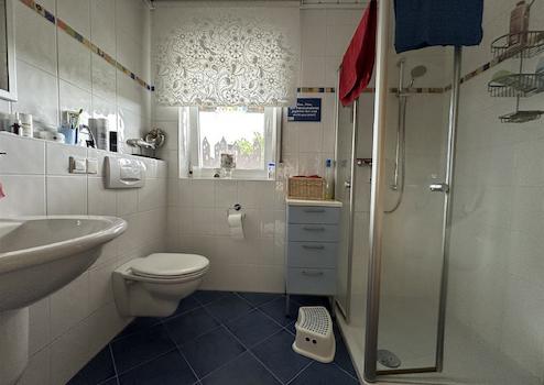 Das Dachgeschoss bietet zwei helle Schlafzimmer sowie ein weiteres Tageslichtbad, ebenfalls mit bodengleicher Dusche perfekt für Familien oder Gäste.