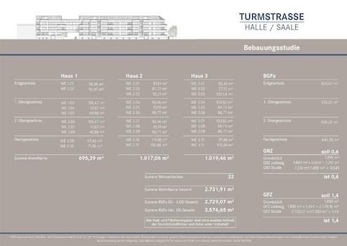 Die derzeitige Planung sieht einen Baukörper mit ca. 2.731 m² Wohnfläche vor, dies entspricht ca. 476€/m² gerechnet auf die zu errichtende vermietbare Fläche. Die Kubatur richtet sich nach den Gegebenheiten des B-Plans.