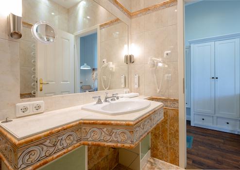 Der alte Kamin bringt Wärme mit Geschichte, das Bad stilvolle Patina.