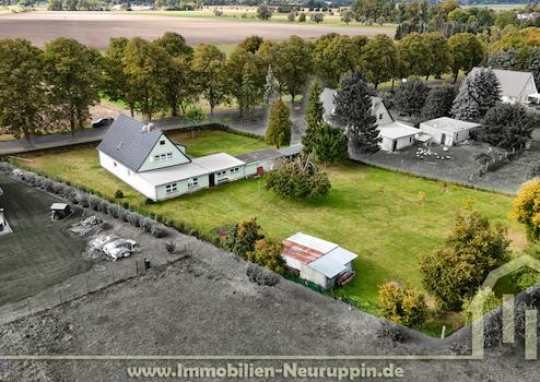 Das Objekt liegt in ruhiger, südlicher Ortslage von Dechtow, einem Ortsteil der Gemeinde Fehrbellin. Die Umgebung ist geprägt von Feldern, Wiesen und einem weitläufigen Landschaftsbild.