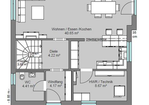 Mit der optionalen PV-Anlage auf dem Dach und einem Batteriespeicher im Hauswirtschaftsraum ist dieses Haus geeignet, den eigenen Strombedarf größtenteils zu decken.