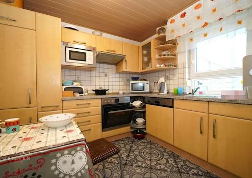 Sie haben schon immer von einer Küche geträumt, die Sie auf Ihren Reisen durch die Gourmetwelt begleitet? Hier hat das träumen ein Ende. Verwöhnen Sie Ihre Familie und Freunde mit gutem Essen in Ihrem Eigenheim. Zahlreiche Schränke bieten Platz für Vorräte und Kochutensilien, eine große Kühl- und Gefrierkombi beherbergt frische Waren, natürlich darf der Geschirrspüler genauso wenig fehlen wie ein Backofen. Ein leistungsstarkes Cerankochfeld, sowie viel Arbeitsfläche lässt das Kochherz höher schlagen, die integrierte Dunstabzugshaube transportiert unangenehme Gerüche und Wasserdampf nach draußen.