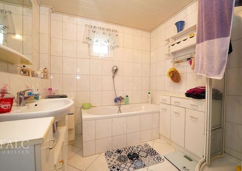 Stressfrei in den Tag starten? Das Badezimmer mit Tageslicht wartet, von Ihnen erobert zu werden. Ausgestattet mit Bad und Dusche, kommt man sich bestimmt nicht mehr in die Quere. Bei einem heißen Bad die Seele baumeln lassen oder lieber unter der bodenebenen Dusche eine Abkühlung genießen? Hier ist für jedermann etwas dabei! Ihre Waschmaschine und der Trockner finden hier oder in der Waschküche des Souterrains eine Heimat.