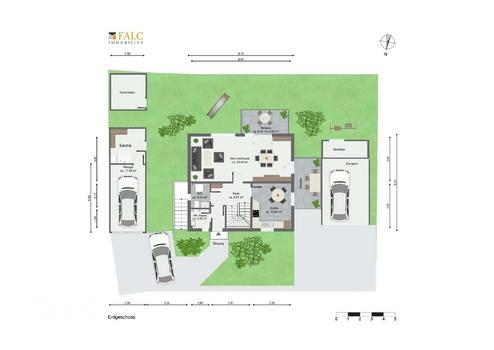 Ihre Fahrzeuge können Sie geschützt in der Garage mit Werkstatt inklusive Wasseranschluss sowie im Carport abstellen, davor finden auch Ihre Besucher genügend Stellfläche. In der Verlängerung der Garage finden Sie eine Sauna für bis zu vier Personen vor, diese wird mit Holz betrieben, was eine besondere Atmosphäre erzeugt.