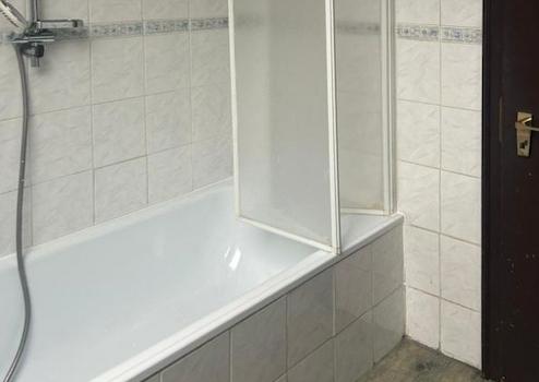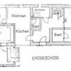 Die ehemalige Gewerbefläche im Erdgeschoss wurde zu zwei Wohneinheiten umgebaut. Das Haus wird über den Eingangsbereich betreten. Von hier aus sind eine Wohnung sowie der Heizraum erreichbar. Eines der Appartements ist von außen begehbar. Die Bäder sind deckenhoch gefliest und mit Dusche, Waschbecken, WC, Handtuchheizkörper und Waschmaschinenanschluss ausgestattet. Der Tankraum ist über die Garage erreichbar.