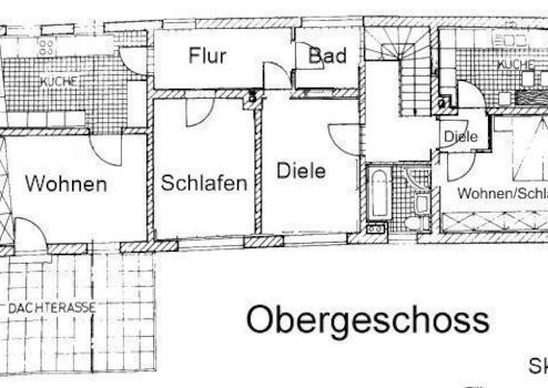 Im Obergeschoss stehen schönes ein Appartement sowie eine großzügige 2-Zimmerwohnung zur Verfügung. Das Appartement wird über die Diele begangen. Von hier aus ist die großzügige und geflieste Küche sowie das Wohn- und Schlafzimmer erreichbar. Das Bad mit Wanne, Waschbecken und WC ist deckenhoch hell gefliest und mit Fenster. Die geräumige 2-Zimmerwohnung wird über eine großzügige Diele mit Zugang zum Flur betreten. Das Wohnzimmer hat Zugang zur großzügigen Dachterrasse. Das Bad mit Dusche, Waschbecken und WC ist ebenfalls mit Fenster.