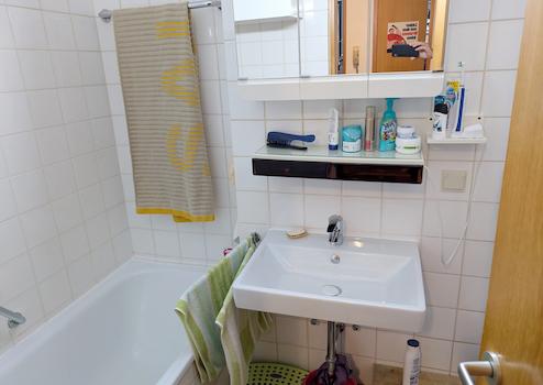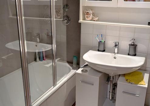 - Das Badezimmer im Erdgeschoss wurde 2020 teilweise saniert.