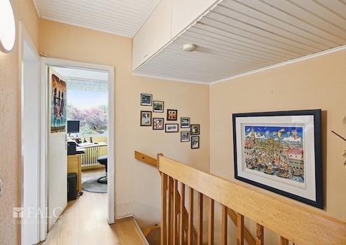 Über die Treppe gelangen Sie in das Obergeschoss, wo sich das Hauptschlafzimmer befindet. Es bietet ausreichend Platz für ein großes Bett und einen Kleiderschrank. Zwei weitere Zimmer können flexibel als Kinderzimmer, Büro oder Gästezimmer genutzt werden. Das Badezimmer ist mit einer modernen Dusche ausgestattet.