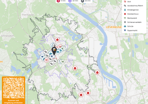 Die Anbindung an den öffentlichen Nahverkehr ist optimal. Mehrere Bushaltestellen sind fußläufig erreichbar, was den täglichen Pendelverkehr erleichtert. Zudem ist die Autobahnauffahrt zur A57 nur eine kurze Fahrt entfernt, was eine schnelle Verbindung zu weiteren Zielen ermöglicht. Der nächste Flughafen ist in ca. 30 Minuten mit dem Auto erreichbar, was die Lage auch für Vielreisende attraktiv macht.