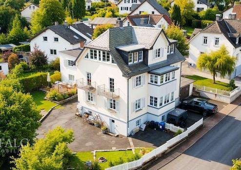 Die im Jahr 1933 erbaute charmante Landhausvilla überzeugt durch ihre stilvolle Erscheinung und Ausstattung sowie der großzügigen Wohnfläche von 248m² und einem 991m² großen Grundstück - ideal für Familien mit Kindern. Der traumhafte Blick über den malerischen Taunus unterstreicht das behagliche Wohngefühl und verleiht dem Anwesen eine besondere Atmosphäre. Durch die sehr flexible Raum- und Geschossaufteilung eignet sich die Immobilie außerdem hervorragend als Praxis- oder Bürofläche für Selbstständige und Freiberufler.