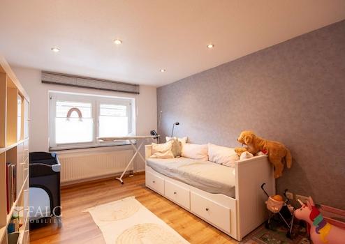 Alle Fenster sind in Kunststoffrahmen mit Isolierverglasung ausgeführt und aus den Jahren 2009 bzw. 2015. Für die Böden wurde im Erdgeschoss durchgängig ein moderner Fliesenbelag gewählt. Die Wohn- und Schlafräume im Obergeschoss wurden mit Laminat- bzw. Vinylböden, die Bäder mit Fliesenböden, ausgestattet.